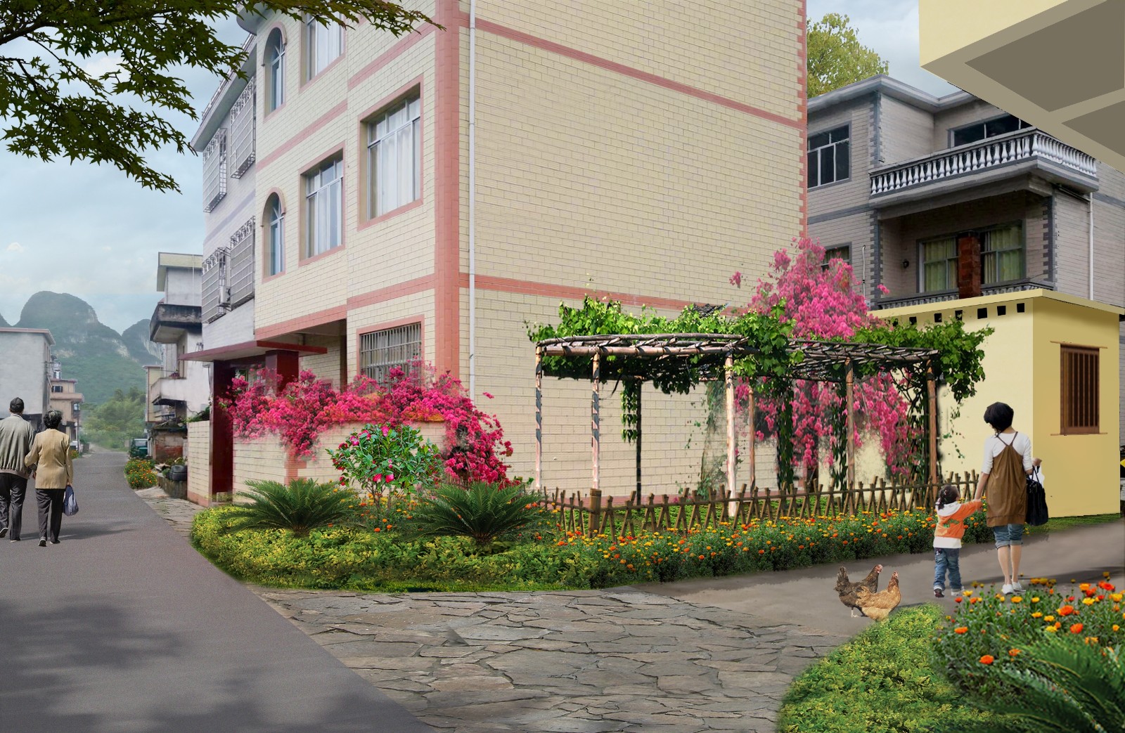 建设内容:庭院,屋前屋后美化和村庄改造面积10000平方米,园区道路建设面积1670平方米,景观小区面积1000平方米,铺设农村污水管网长10000米,房屋风貌改造面积14300平方米及购置污水集中处理设备1批。